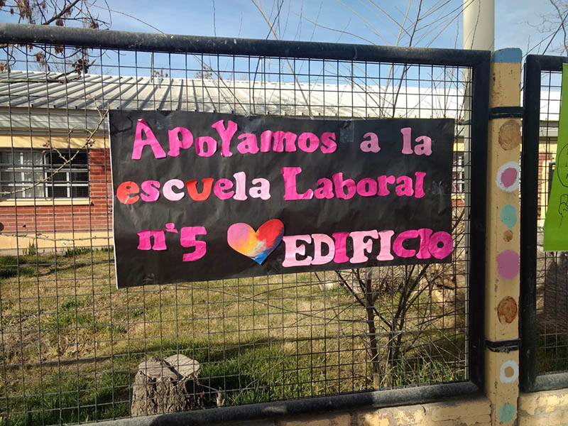 Hace dieciocho años que la Escuela de Formación Cooperativa y de Laboral Nº 5 de Huergo reclama un edificio propio, el 6 de agosto de 2021, se realizó un abrazo simbólico como una acción más para visibilizar la problemática de esta institución educativa que funciona en unas aulas cedidas por la Escuela de Educación Especial Nº 15, con toda la dificultad que esta situación acarrea para el proceso de enseñanza- aprendizaje.